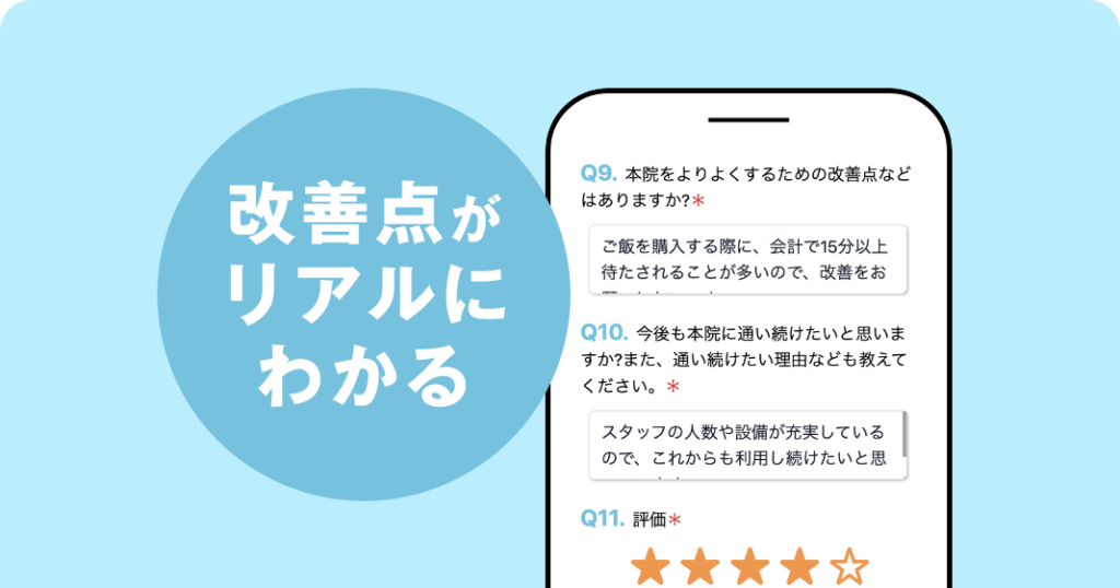 患者さんのフィードバックはリアルタイムで確認可能。即座に問題点を把握し、迅速に対応することで患者満足度を向上させます。