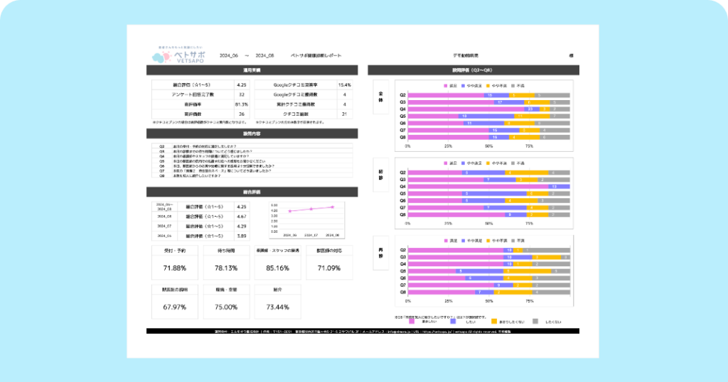 名刺を配るだけで、患者さんのフィードバックを収集し、詳細な分析レポートを作成。これにより、満足度を正確に把握し、具体的な改善策を講じることができます。