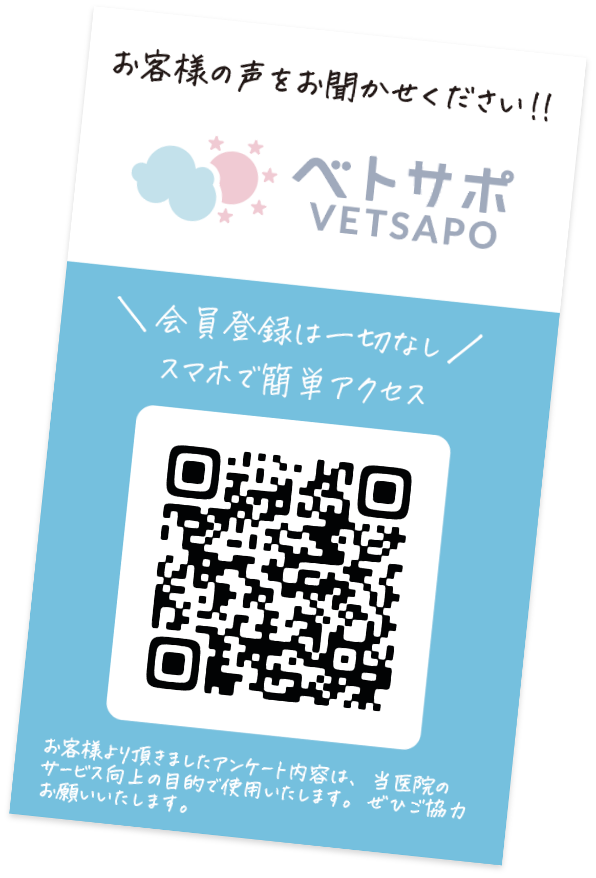 ベトサポは名刺を配るだけで患者のフィードバックを簡単に収集。誰でも手軽に利用でき、スタッフの負担を軽減します。